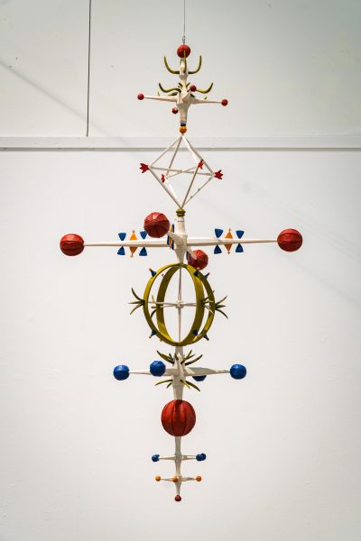 Vindflöjel av Sebastian Riechlin med svarvad kärnfuru knopp av Felix Wink.