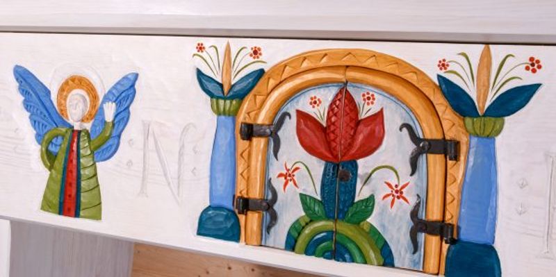 Att göra en kyrklig utsmyckning har sedan länge varit en dröm och längtan. Tidigt, under mina studier med papper, penna och kamera av den folkliga slöjden kom insikten till mig om att den folkliga slöjden alltid influerats av kyrklig interiör. Att slöjdare under högmässan hämtat förlagor från bilder, mönster och renässansgesismer till sitt eget slöjdande. Inspiration hämtades också från de illustrationer som fanns i figurbibeln från medeltid, med dess naivistiska men tydliga bildspråk och fostrande bildestetik. Det här var innan svenska kyrkan skaffade nationella arkitekter vid slutet av 1700-talet, när man fortfarande anlitade lokala slöjdare och hantverkare för utsmyckning och byggande av kyrkan. Utifrån den illustrerade bibeln tolkades änglar, smådjävlar, trumpeter, mystiska djur, fåglar, och bibliska sekvenser.